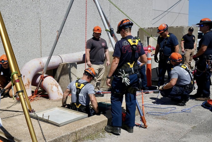 Chattanooga Fire Department rescue squads participated in confined space training, practicing with new equipment while sharpening technical skills
