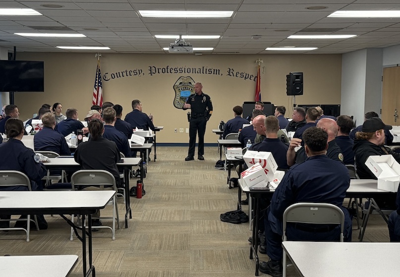 Chief Chambers spoke to the group about the importance of wellness, building strong relationships, and utilizing the Peer Support Program.